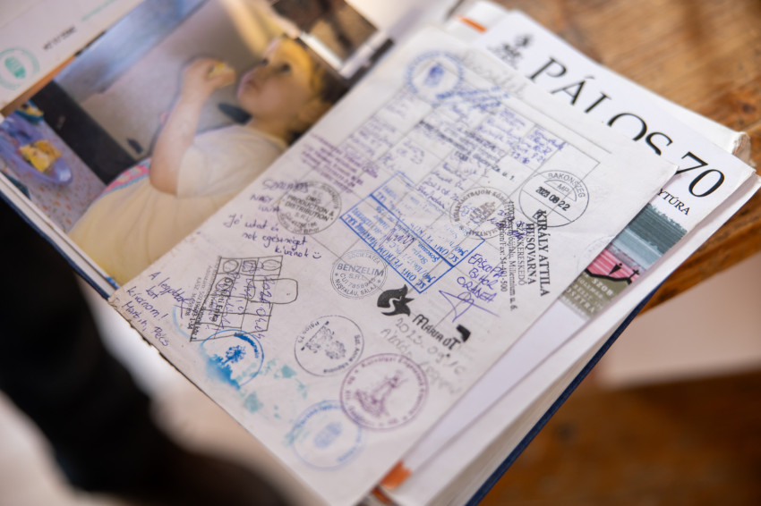 Megmutatják a zarándokkönyvet is, a gyerekek és Lídia által készített zarándokútlevelekkel. Gergely számra különösen nagy erejük van a zarándoklatoknak, a gyógyulásának útját látja bennük. A családot összetartják ezek az utak, a gyerekek lelkesen idézik fel az emlékeiket. Gergely sokszor egyedül vág neki, mint amikor elhatározta, hogy a családjáért meg fog gyógyulni, és elindult Gyimesbe a Mária-úton. Innentől még inkább népmeseivé válik a történet: az apa Kerekegyházáról indult el, okostelefon nélkül, egy régi Mária-utas térképpel, azon nézte, hol járhat, a többiek pedig otthonról mondták neki telefonon, mikor merre kanyarodjon. Egy hétfői napon vágott neki az útnak, de kedden délben érte kellett menni Lajosmizsére, mert a rossz cipőben megsérült a talpa. Pihent három napot, aztán újra elindult, Gödöllőn keresztül Jászberényig jutott.