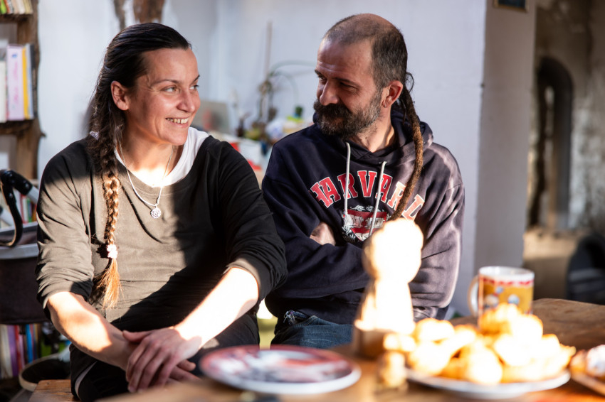 Térjünk most vissza kicsit arra a történetre, hogyan is ragadtak itt a tanyán. A nagyobb gyerekek Baranya megyében születtek, a családnak szép háza volt Peterden, aztán később Kisherenden. Akkor költöztek tanyára, amikor a covid-járvány idején a vállalkozásuk csődbe ment, és Gergely nagyon megbetegedett. Egy ideje már amúgy is azt érezték, hogy az a közeg nem fogadja el az életmódjukat, azt, ahogyan a gyerekeket nevelik. Szerettek volna erdőt, tanyát…