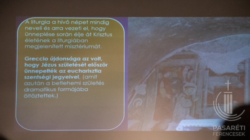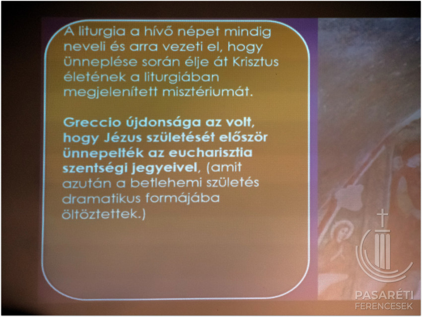 „A liturgia a hívő népet mindig neveli, és arra vezeti, hogy az ünneplés során élje át Krisztus életét, a liturgiában megjelenő misztériumát” – összegezte Kapisztrán atya. Kiemelte, érdekes, hogy karácsonynak nincs külön szertartásrendje, mint például vízkeresztnek vagy a szent három napnak, nincs szentelmény. Greccio újdonsága az volt, hogy Jézus születését először ünnepelték az eucharisztia szentségi jegyeivel; Ferenc újdonsága valójában az eucharisztikus jászol volt.