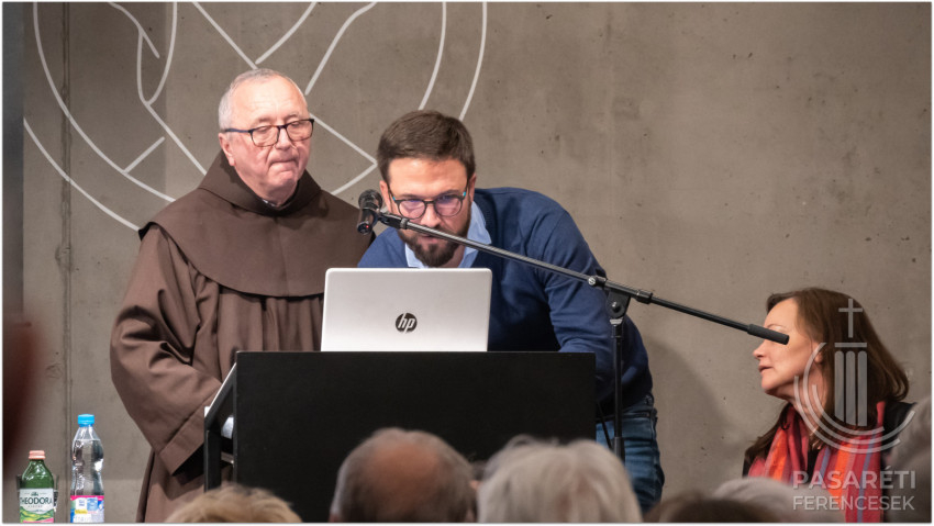 Az este második felében a hagyományos kérdezz-felelek rész következett. Fontos szerepe volt Ferencnek abban, hogy a karácsony ilyen bensőségessé vált, a karácsony misztikusának is tartják – vetette föl Bagyinszki Ágoston, Kapisztrán atya véleményét kérve. Varga Kapisztrán először is idézett egy bencést, Jáki Teodózt, aki kijelentette: „Egészséges rendi sovinizmus nélkül nincs életszentség.” Majd Bálint Sándorra utalt, aki szerint a magyarokat a bencések térítették meg, de a ferencesek tették kereszténnyé. Miért is? Nemcsak a ferencesek érdeme, hanem a IV. Lateráni Zsinat mint lelkipásztori forradalom eredménye: elkezdték az évi legalább egyszeri gyónásra és áldozásra biztatni a híveket. A szentségekkel való élés ott van Ferenc minden elgondolásában – mondta Varga Kapisztrán –, a porciunkulai búcsúnak feltétele volt a gyónás, az elégtétel, az áldozás. Áldozni nagy dolog volt akkoriban – említette –, 1221-ben például, amikor a testvérek a német birodalom felé tartva miséztek és áldoztak egy faluban, utána az emberek megcsókolták a lábuk nyomát, mondván: ti nyilván nagyon nagy szentek vagytok, ha mertetek áldozni.