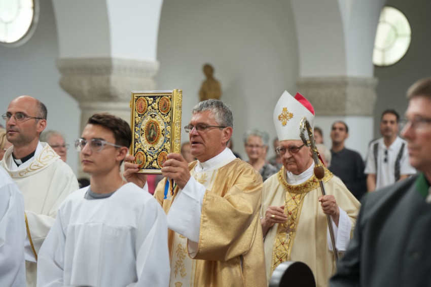 Még Mohácsról is érkeztek hívek a csaknem három éve bazilika rangra emelt bátai kegytemplomba, hogy részt vegyenek a német nemzetiségi búcsú szentmiséjén. Az ünnepélyes bevonulást követően Mayer Mihály nyugalmazott püspök német nyelven is köszöntötte az egybegyűlteket. Hasonlóképpen az olvasmányok és az evangélium is elhangzott mind németül, mind pedig magyar nyelven.