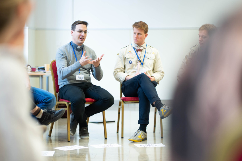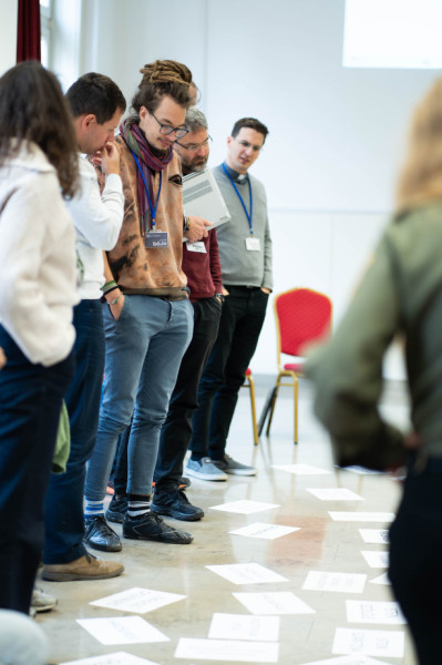 A több mint húsz jelenlévő ezután ismerkedéssel és az egyházmegyei fiatalokról szóló totóval folytatta a napot. Ez utóbbi már szerves része volt a következő témának, ugyanis a totóban a legutóbbi népszámlálás statisztikai adataira, egy 2020-as vallásszociológiai, illetve az ifjúsági referatúra által nemrég készített felmérés eredményeire kellett tippelni. Egyházunk jelenét azonban nemcsak számok és a statisztika segítségével ragadták meg, hanem a nap következő lépéseként különböző egyházkép-megfogalmazások közül keresték meg a hozzájuk legközelebb állót, amelyet először hármasával, majd nagyobb körben osztottak meg egymással.