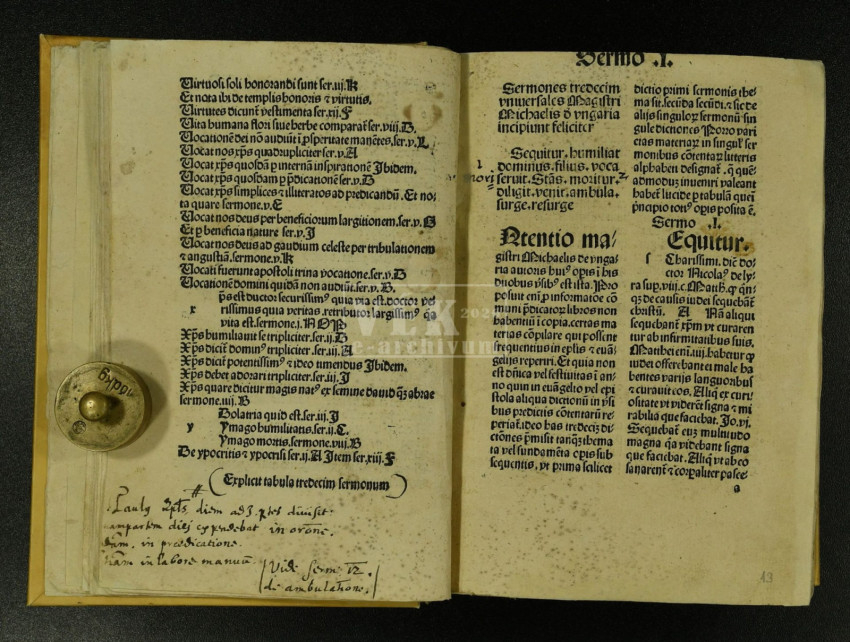 A Veszprémi Érseki Könyvtár ősnyomtatvány különgyűjteményében, a 37017-es raktári jelzet alatt őriz egy öt műből álló kolligátumkötetet, melynek első darabja Michael de Hungaria munkája, mely a 15. század végén virágzó prédikációs irodalom kiemelkedő jelentőségű alkotása. (A kolligátum kifejezés a latin összekötő szóból ered. Úgy jön létre, hogy egymástól független műveket együvé kötnek – a szerk.)
