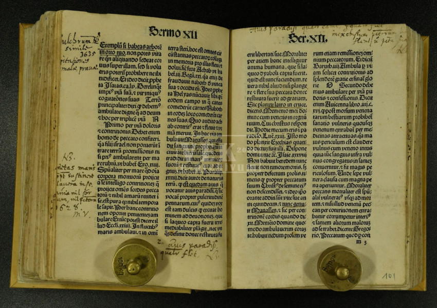 A Sermones tredecim universales 1487-es strassburgi kiadásából hazánkban összesen hét példány lelhető fel. A Veszprémi Érseki Könyvtárban (VÉK) őrzött mű egyszerű kiállítású, részben rubrikált példány. A lapszélekre írt számos latin nyelvű bejegyzés a kötet újrakötését megelőző csonkolás miatt csak részben olvasható. A margináliák tanúsága szerint még az 1600-as években is gyakran forgatott mű volt.