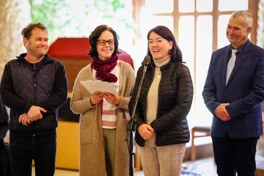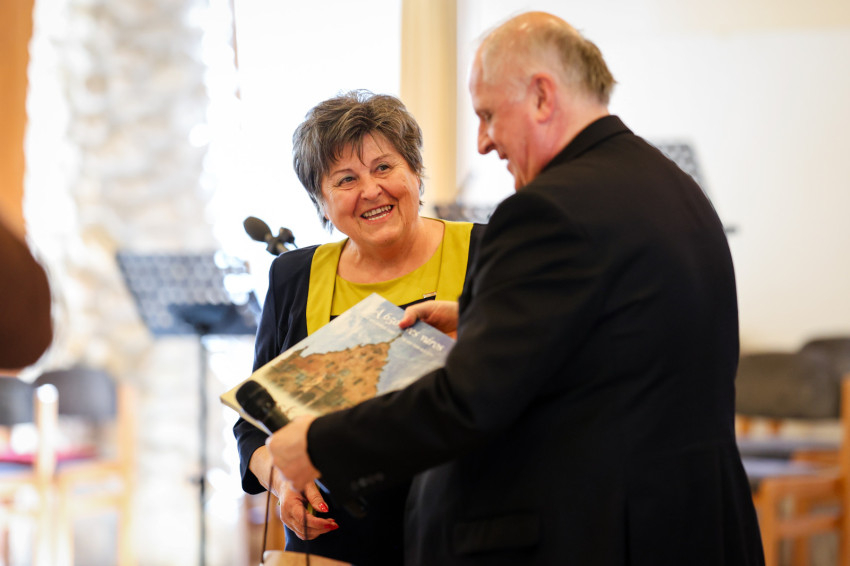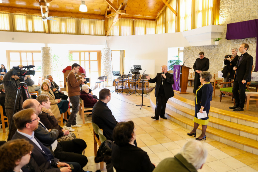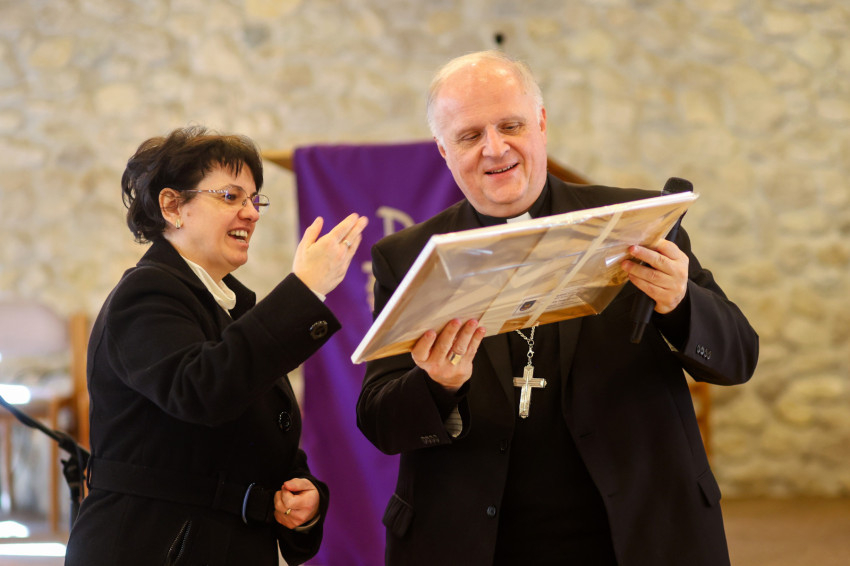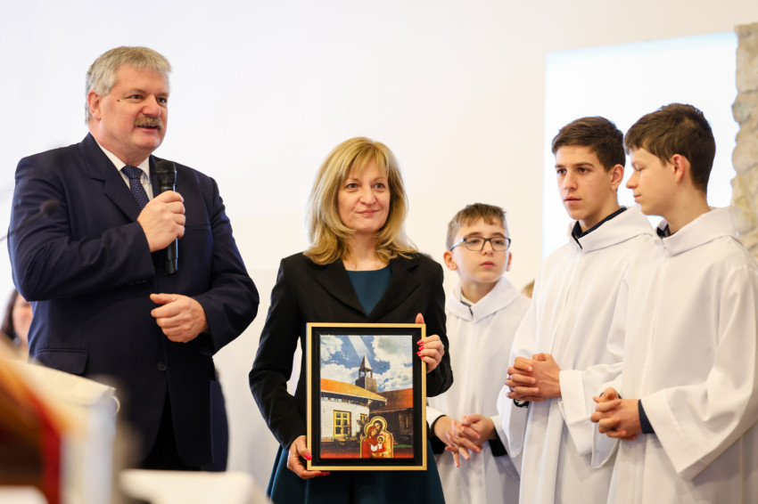 A képviselő-testület és a közösség nevében Hortobágyi Tibor köszöntötte a nunciust, majd átadtak neki egy festményt, amelyet Balanyi Károly, a közösség tagja készített számára.