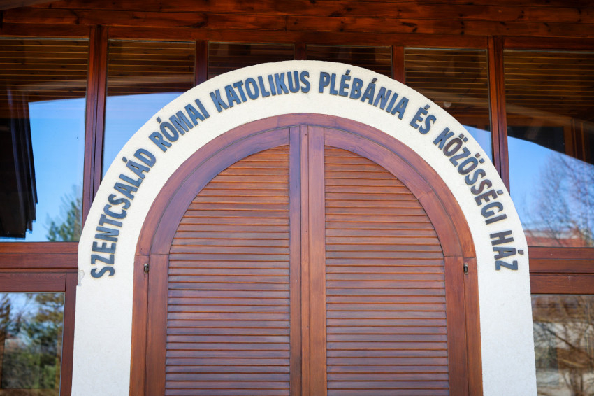 Ezután Hatházi Róbert plébános mutatta be a harminc éve alapított plébániát, ahol előbb született meg a közösség, mint a kőtemplom. A Szent Család oltalma alá helyezett közösség valóban nevéhez méltón egy nagy család, ahol generációk nőnek fel, újabb és újabb csoportok születnek. A harminc év alatt három plébánosa volt a közösségnek, most az 517-es kánonban megfogalmazottak alapján papi közösséget bíztak meg a vezetésével, melyben Ivanics Zoltánnal együtt állnak helyt. Tóth Tamás kisegítő lelkészként van jelen hétvégente és ünnepnapokon, Néma Attila és Takács Gábor pedig állandó diakónusokként szolgálnak. Két éve két másik egyházközséget és egy városi idősotthont is ellátnak, valamint szoros kapcsolatban állnak a Szent Imre Katolikus Óvoda és Általános Iskolával. Vasárnap a három szentmisén 600 hívő vesz részt, csütörtökönként pedig egész napos szentségimádást tartanak.