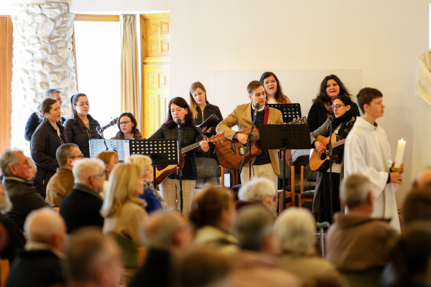 A plébánia gitáros kórusa angol nyelven is énekelt, sőt, még lengyelül is egy częstochowai Szűzanyához szóló éneket, kedves meglepetésként a nunciusnak, aki lengyel felmenőkkel is bír. Ezeket a gesztusokat külön megköszönte Michael Wallace Banach a kórusnak, hiszen lélekben visszarepítették őt tengeren túli plébániájára.