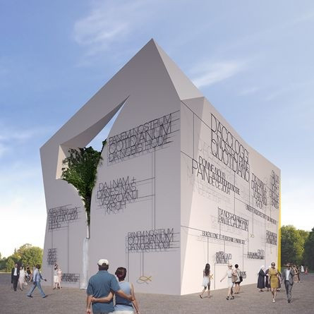 A szentszéki pavilonban fotókiállítás, két fontos művészeti tárgy (Tintoretto: Az utolsó vacsora és Rubens: Az Eucharisztia megalapítása című festménye), filmvetítések és különböző témákról szóló eseménysorozat várja majd az érdeklődőket. A tárlat négy különböző dimenziót mutat be: egy megóvandó kertet, egy megosztásra váró ételt, egy fogást, amely nevelő hatású és egy kenyeret, amely jelenvalóvá teszi Istent a mai világban.