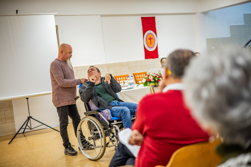 „Nemcsak a gyenge, elesett, fogyatékos embernek nehéz az élete, hanem az egészségesnek is, mert jönnek a csapások: a nyomor, a fertőző betegségek, az energiaválság, a környezeti katasztrófák és most a háború. De mi van a gyengékkel? Életünk elején és végén vagyunk gyengék, s ott vannak még a fogyatékos emberek. Most nagyon jó helyen vagyunk, hogy az emberek méltóságáról beszéljünk, hiszen láttuk a sérült fiatalok előadását és szavalatát, és láttuk a szemükben a boldogságot és az örömet, hogy mi meghallgattuk őket, tapsoltunk nekik, s az életük boldogabb lett” – fogalmazott Rojkovich Bernadette doktornő, aki előadásában érintette az abortuszt, a fogyatékos emberek méltóságát és az emberi élet végét fenyegető veszélyeket.