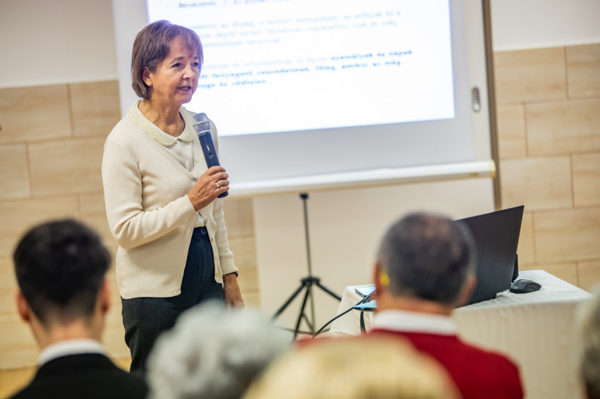 Rojkovich Bernadette az előadásában szólt arról is, hogy fontos méltóságteljesen elbúcsúzni az élettől.