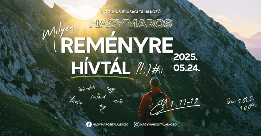 Az idei tavaszi Nagymarosi Ifjúsági Találkozón, a szentévhez kapcsolódóan a reményről gondolkodunk. Milyen reményre hívott minket a mennyei Atya? Mi arra hívunk, hogy tarts velünk május 24-én, szombaton és előadóink, műhelyvezetőink segítségével keressük és találjuk meg együtt a választ.