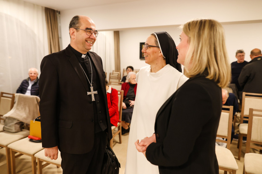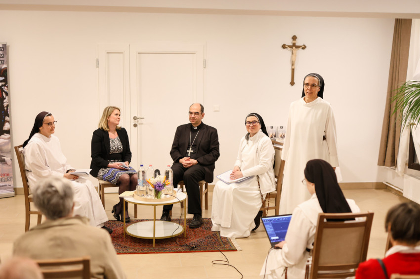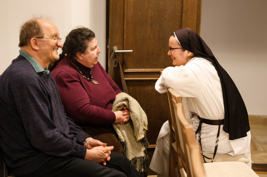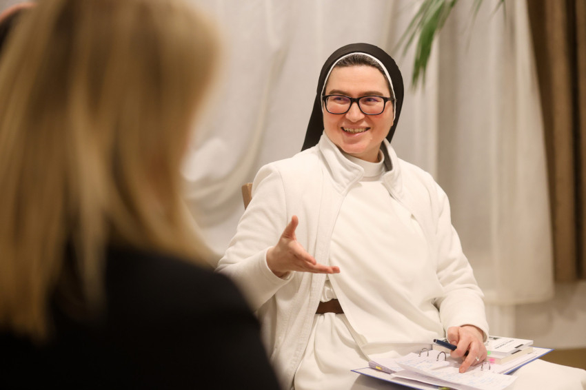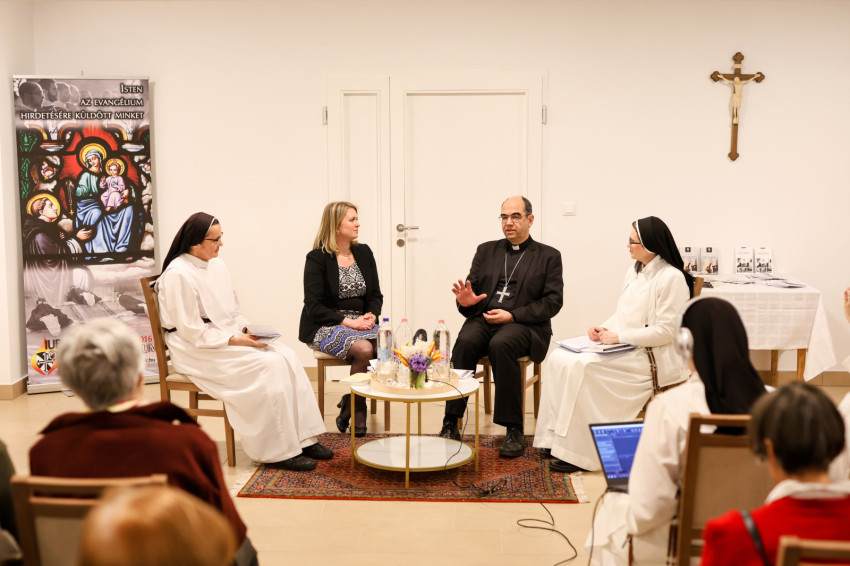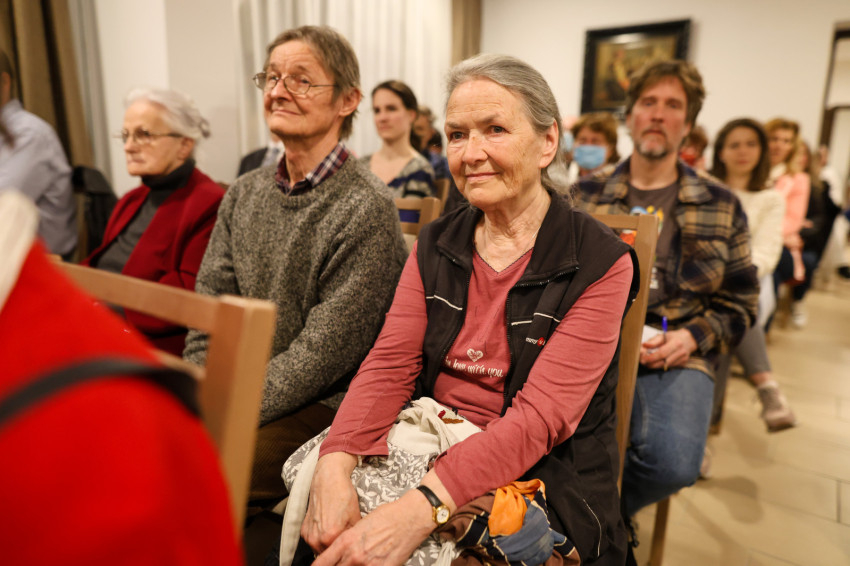 A szép számmal megjelent érdeklődőket Kakucs Adél Petra nővér, a domonkos nővérek általános főnöknője köszöntötte. Kiemelte: mindannyiunk számára fontosak a családi, baráti kapcsolatok, a Jóistennel való kapcsolat pedig meghatározó az életünkben. Mivel a Jóisten nem mennydörög és nagyon ritkán kiabál, nagyon fontos, hogy jól és tisztán halljuk meg a hangját. Biztos, hogy a következő beszélgetés nagy segítség lesz számunkra, hogy még jobban és tisztábban halljuk az Ő hangját, és remélhetőleg abban is segítségünkre lesz, hogy egyre jobban akarjuk Őt hallani, és többet is tegyünk ezért.