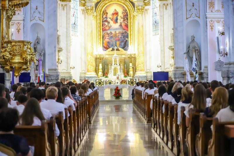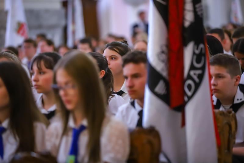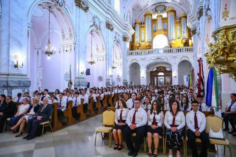 A főpásztor szentbeszédében kiemelte, hogy kegyelmi esztendőt élünk. A ballagók azért, mert tanulmányaik első nagy lezárásához értek, az egész Egyház pedig azért, mert jubileumi szentévet tartunk. Az év mottója, hogy a remény zarándokai vagyunk.