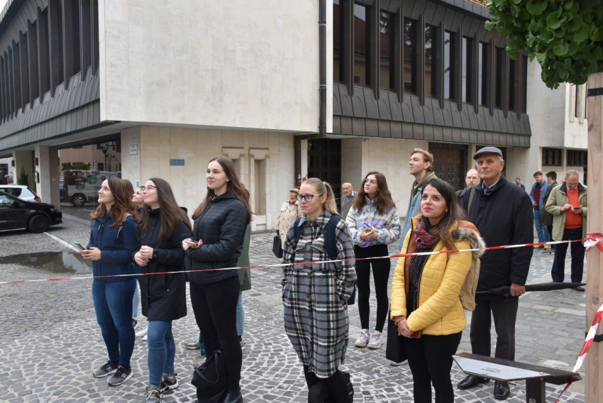 A legnagyobb harang költözését sokan kísérték figyelemmel. Köztük voltak a Széchenyi István Egyetem építészmérnök-hallgatói is, akik éppen a Győri Egyházmegyei Levéltárat és a Szent László Látogatóközpont kiállításait keresték fel.