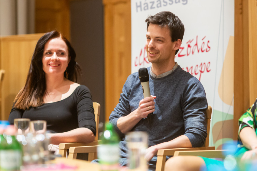A moderátor kérdésére, hogy a házaspárok lényéhez mit adott hozzá a társuk, Győri Tamás József elmondta: a feleségével együtt abban a kegyelemben részesültek, hogy nagyon korán, egyetemista korukban találkoztak. Sok mindent átéltek, és az biztos: nem az lenne, aki, „ha nem lenne Virág. Ő az, aki engem is formált”. Csodálatos megtapasztalni, hogyan formálja Isten a házastársakat egymás által is a maga képére és hasonlatosságára. Győri Virág kifejtette: sok mindenben nagyon különböznek egymástól, sok mindenben viszont nagyon hasonlítanak egymásra. Összességében azonban jó párost alkotnak. Úgy tudják kiegészíteni egymást, hogy abból valami több születik. Virág például bátortalan személyiség, a férje, Tamás viszont bátor, sőt bizonyos dolgokban vakmerő is, így „jól tudja feszegetni a határaimat. Hálás vagyok azokért, amikben formált engem”.