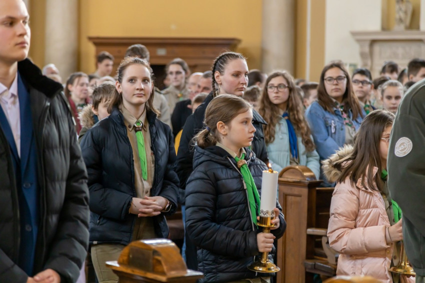 A cserkésztalálkozó koncelebrált szentmisével ért véget a Prohászka-emléktemplomban, melyet Spányi Antal püspök mutatott be, Székesfehárváron szolgáló és vendég papok, Sajgó Szabolcs SJ és Koronkay Zoltán SJ viceposztulátorok koncelebrálásával.