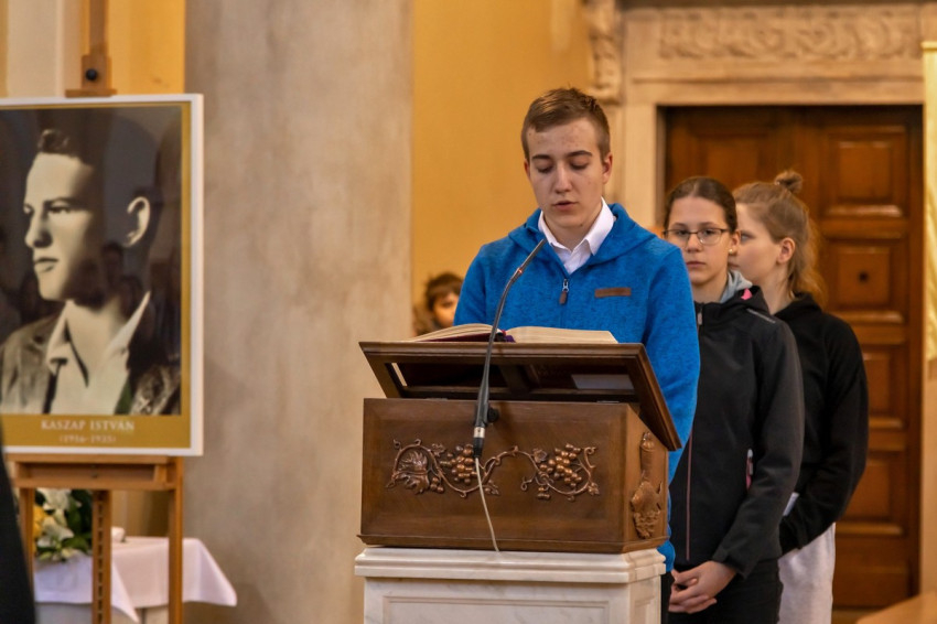 Spányi Antal püspök szentbeszédében példaképként állította a mai fiatalok elé Kaszap Istvánt, a ciszterci diákot, a kiváló sportolót, a zrínyis cserkészt, a végzetes betegségét hittel és türelemmel viselő novíciust.
