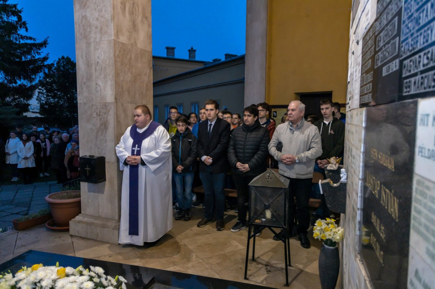 Tóth Tamás plébános a szentmisében felhívta a jelenlévők figyelmét, hogy a Prohászka-templom oldalán álló Kaszap-sírnál ma is helyeznek el hálatáblákat közbenjárásáért, segítségéért.