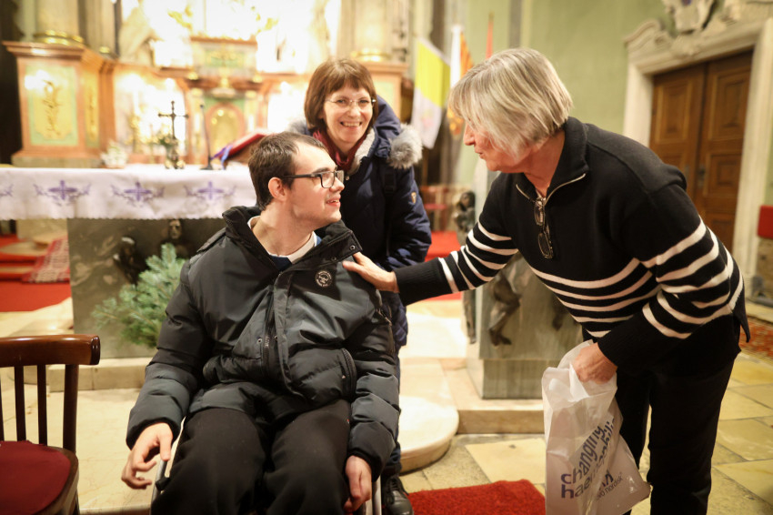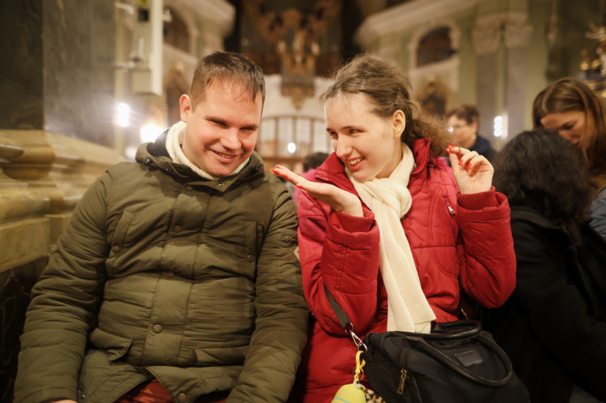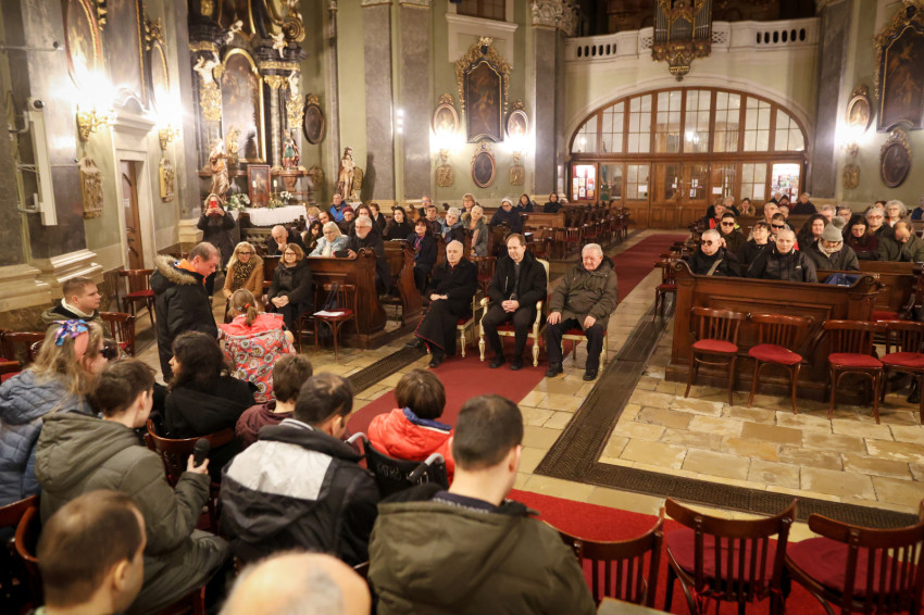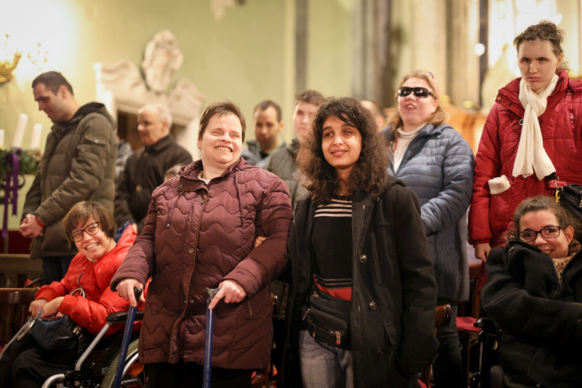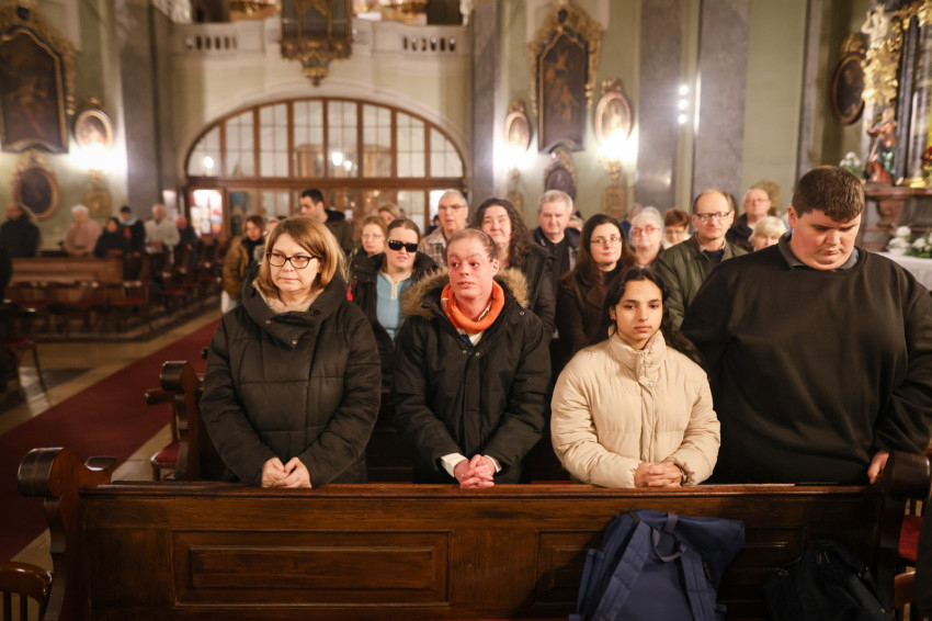 Az intézmény gondozottjai izgatottan készülődtek december 18-án délután a Szent Anna-templomban. Az egykori gyerekek már fiatal felnőttekké váltak. Köztük többen nemcsak látás-, hanem mozgássérültek is, kerekesszékben ültek. Mohos Gábor püspök, Jánosa Domokos, a templom plébánosa és Szitás József, veszprémi főegyházmegyés nyugalmazott plébános velük szemben foglaltak helyet.