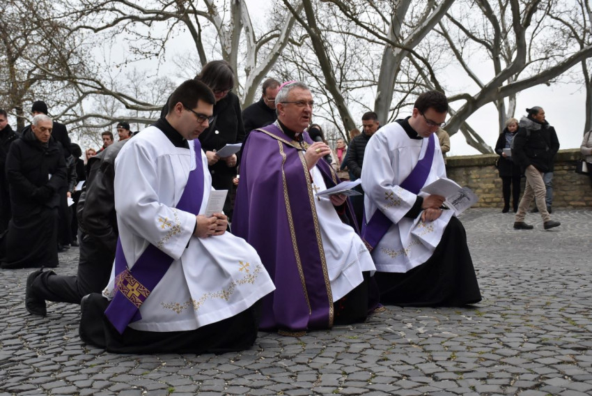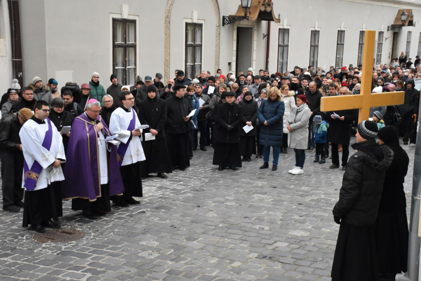 Győrben nagypénteken hat órakor indult a keresztút a Nagyboldogasszony-székesegyház előtt álló Mindenki Krisztusa szobortól. Az ájtatosságot Veres András megyéspüspök vezette.