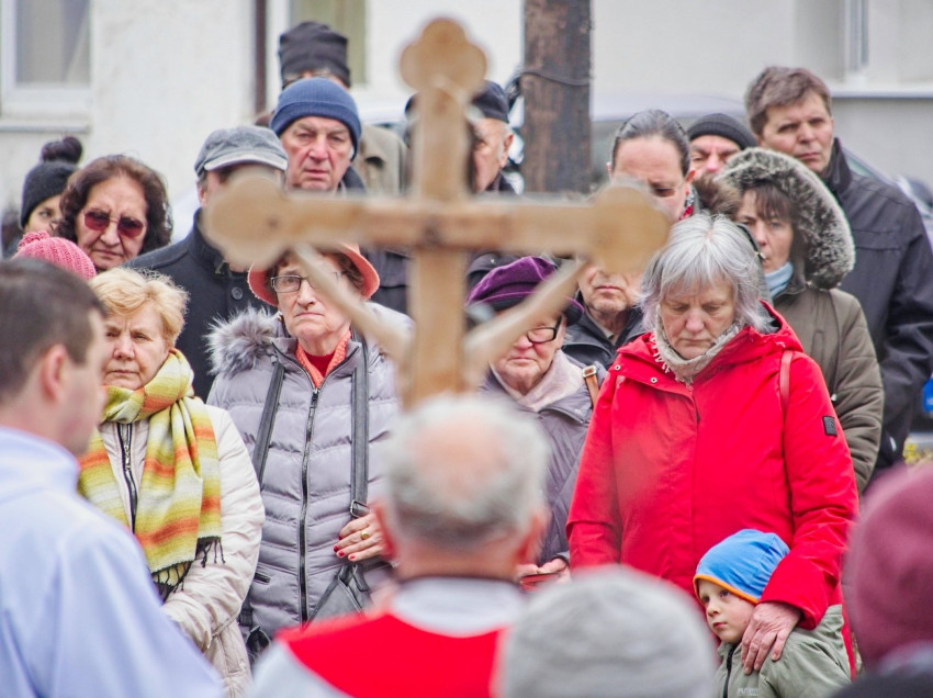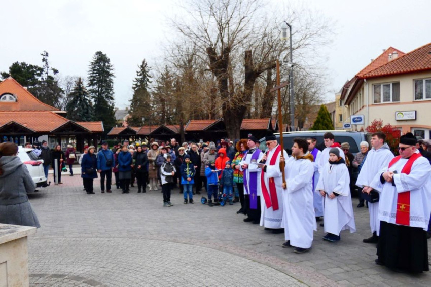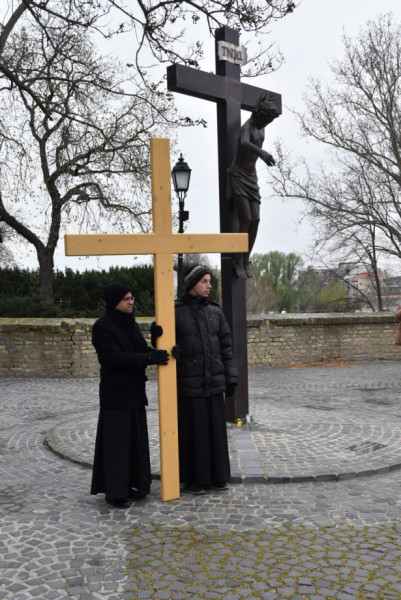 Nagypéntek délelőttjén Mosonmagyaróvár két történelmi részének hívei, a magyaróváriak és a mosoniak együtt emlékeztek meg Krisztus szenvedéseiről és imádsággal követték keresztjét a városon keresztül.