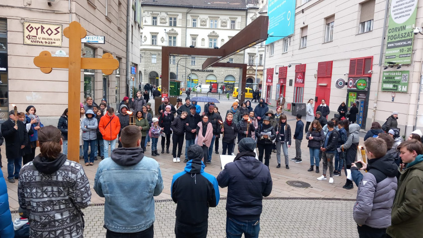 Az idei keresztúton nemcsak a tanúságtétel és a megemlékezés volt az állomások elmélkedéseinek központjában, hanem a háború miatt szenvedőkről is megemlékeztek, értük is fohászkodtak. Idős és fiatal egymás mellett imádkozott, énekelt a városon keresztül.