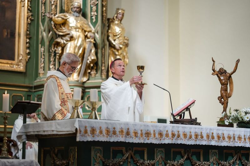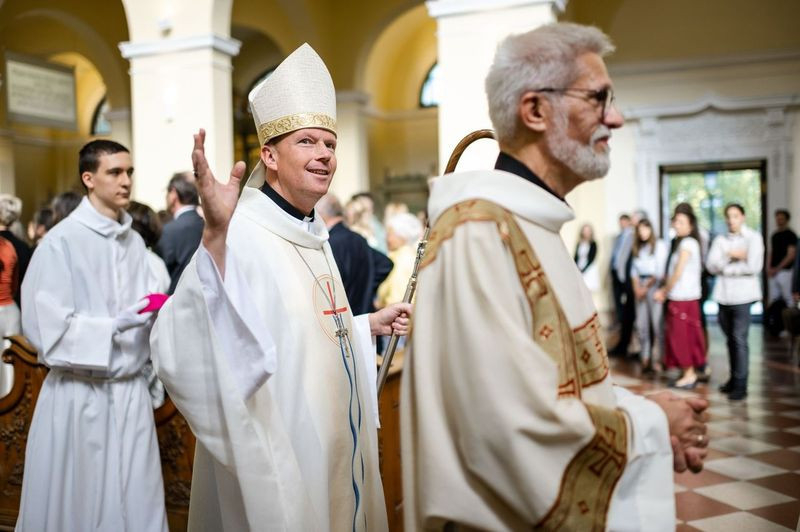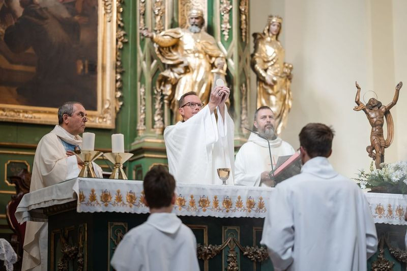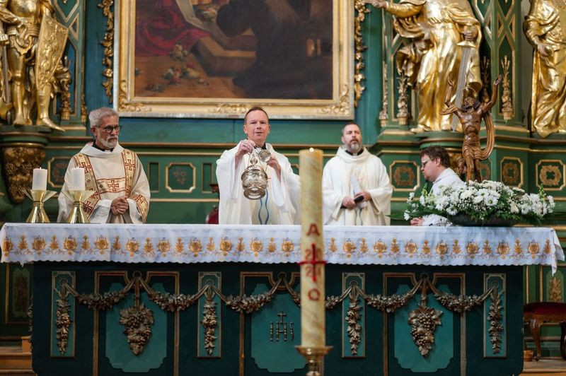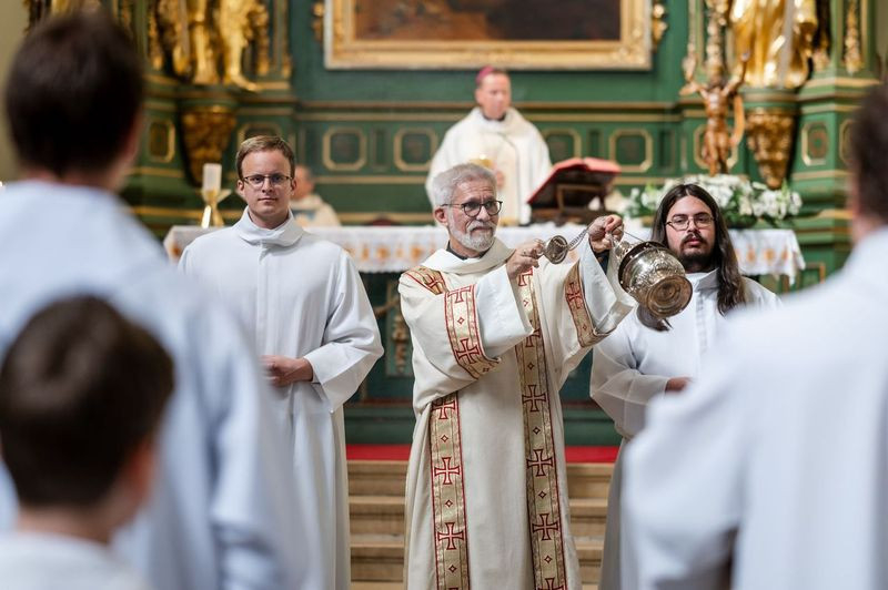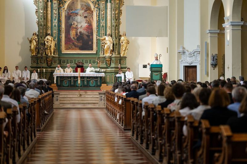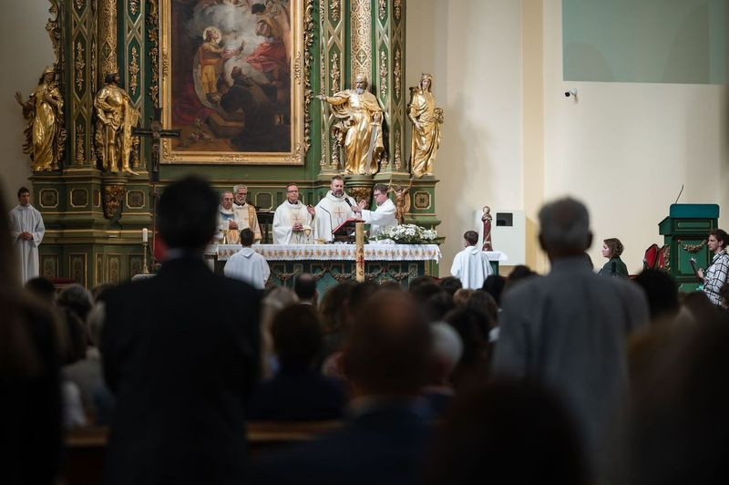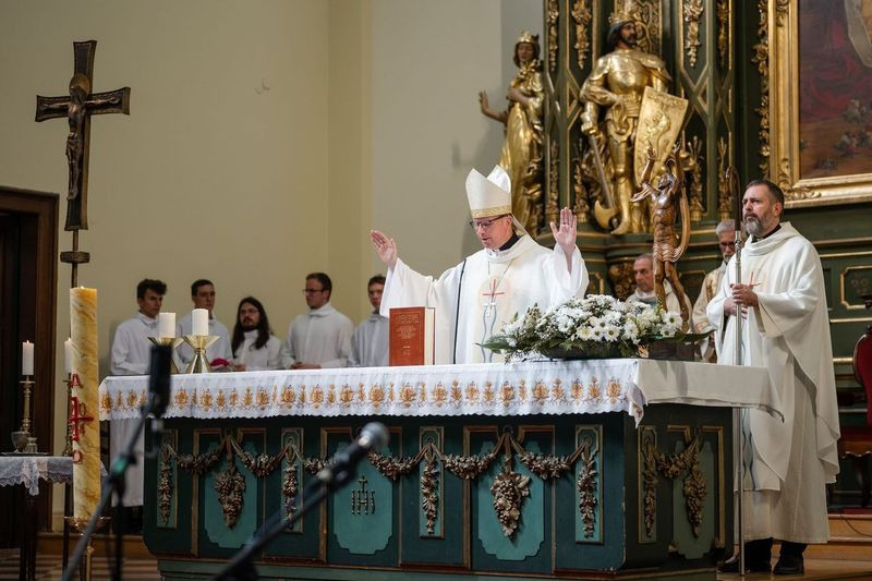A szentmise kezdetén Szkaliczki Örs OCist plébános köszöntötte Fábry Kornél esztergom-budapesti segédpüspököt, aki a szentség kiszolgáltatására érkezett. Mellettük Varga János, a bécsi Collegium Pazmanianum rektora koncelebrált.
