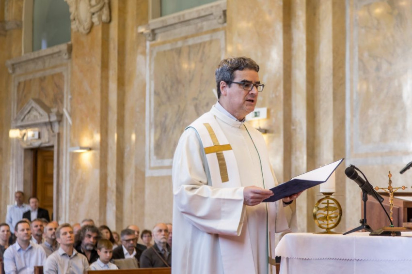 Szentek vagyunk, az Isten kezéből, mondta Urbanek Rudolf, hisz a mi törékeny emberségünkre merte bízni, amit Krisztus tett az utolsó vacsorán: „ezt cselekedjétek az én emlékezetemre”. Ezért