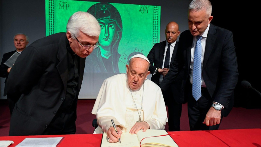 Ferenc pápa végül bejegyzést írt a Pápai Szalézi Egyetem vendégkönyvébe: „Nagyon örültem ennek a találkozónak a papokkal. Imádkozzatok értem! Testvéri szeretettel: Ferenc”.
