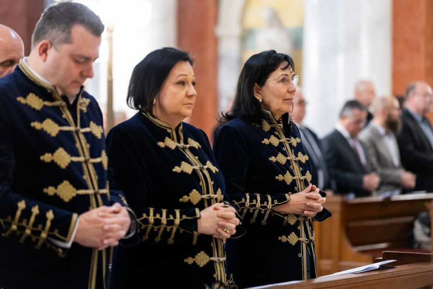 A főpásztor köszöntötte Marton Zsolt váci megyéspüspököt, a paptestvéreket, a világi elöljárókat, az egyetem dolgozóit és polgárait.