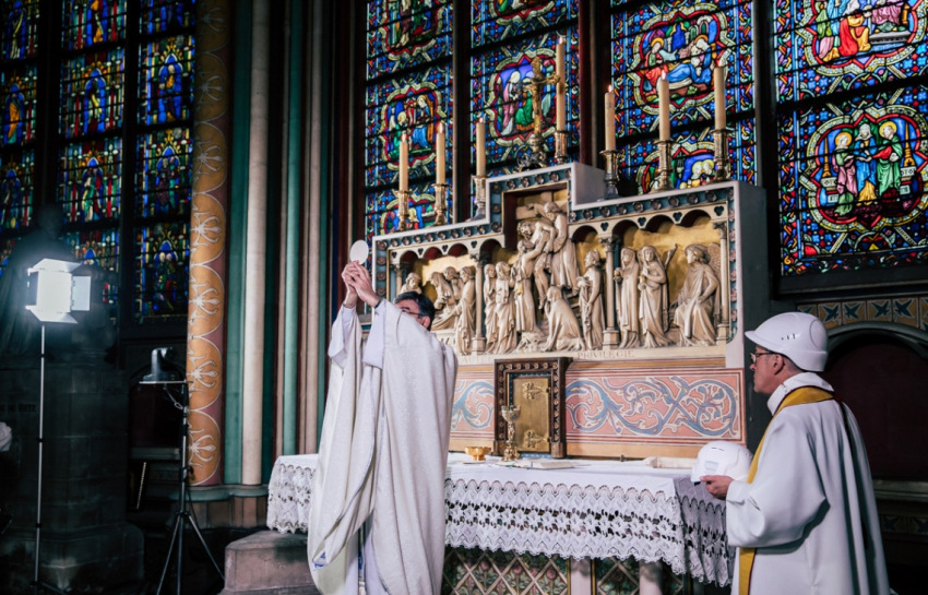 Múlt vasárnap tízezer fiatallal találkoztam. Megajándékoztak valamivel, ami épp a Notre-Dame-ban történtekre emlékeztetett. A szentmise olvasmányai című könyvet kaptam tőlük, ugyanolyant, amit én ajándékoztam a tűzoltóknak. Csak ez új volt, és nem égett szélű, mint a másik. Nos, ekkor felidéztem nekik, hogy ők az én igazi katedrálisom: ők, ez a tízezer élő kő alkotja a mai Egyházat. Azonban ez az épület pont arra emlékeztet, hogy ezeknek az élő, értékes köveknek szükségük van egy hozzájuk méltó értékes helyre. Ezért építették föl ezt a katedrálist.