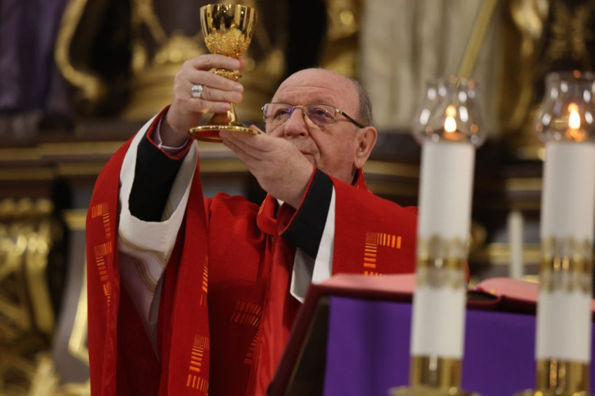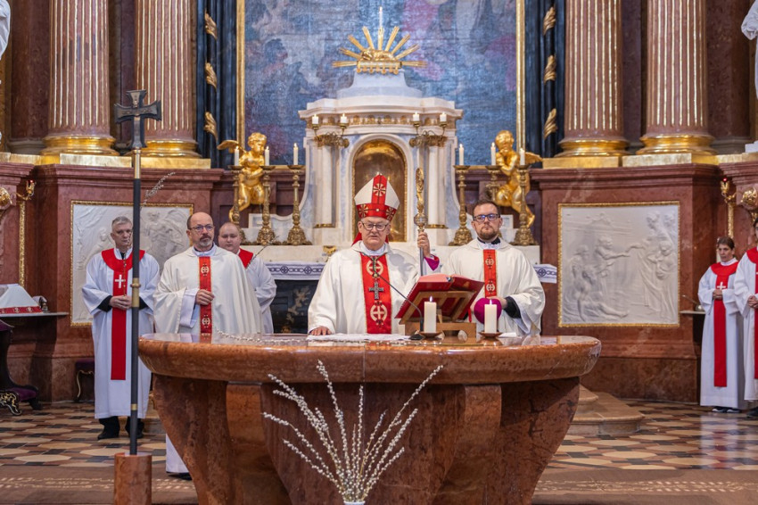 Székely János megyéspüspök a szombathelyi székesegyházban mutatott be ünnepi szentmisét április 13-án.