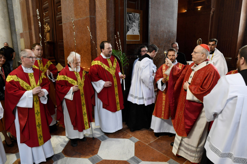 Erdő Péter bíboros, prímás virágvasárnap a felújítás alatt álló esztergomi Nagyboldogasszony- és Szent Adalbert-főszékesegyházban mutatott be ünnepi szentmisét. Előtte megáldotta a húsvéti barkát, majd az asszisztenciával a Bakócz-kápolnától a főoltárhoz vonult, ahol könyörgéssel folytatódott a szertartás. Az igeliturgia csúcspontjaként az esztergomi szeminárium növendékeinek szkólája énekelte el a passiót, Jézus Krisztus szenvedéstörténetét.