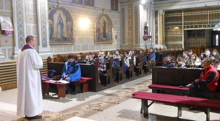 A zarándoklat végén a gyerekek a Szent János apostolról és evangélistáról elnevezett (Hildegárda) templomban szentmisén vettek részt, melyet az őket kísérő Oláh Zsolt, a nagybányai Szentháromság-plébánia segédlelkésze mutatott be. A szentbeszédet Vass Loránd ifjúsági és ministránslelkész, a székesegyház segédlelkésze mondta. Buzdította a fiatalokat, hogy tartsanak ki hivatásukban.
