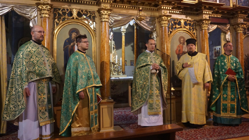 A nap elején néhányan rögtön szolgálatba is álltak a Szent Liturgián, amelyen több ünnep is egybekapcsolódott. Ezen a napon, május 25-én tartották pünkösd ünnepének zárását, és egyúttal Mindenszentek vasárnapjára készültek, valamint a Miskolci Egyházmegye védőszentje, Keresztelő Szent János próféta fejereklyéjének emlékét tisztelték.