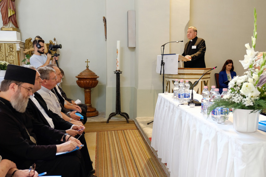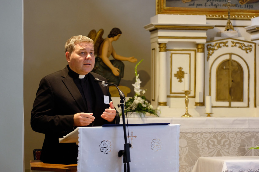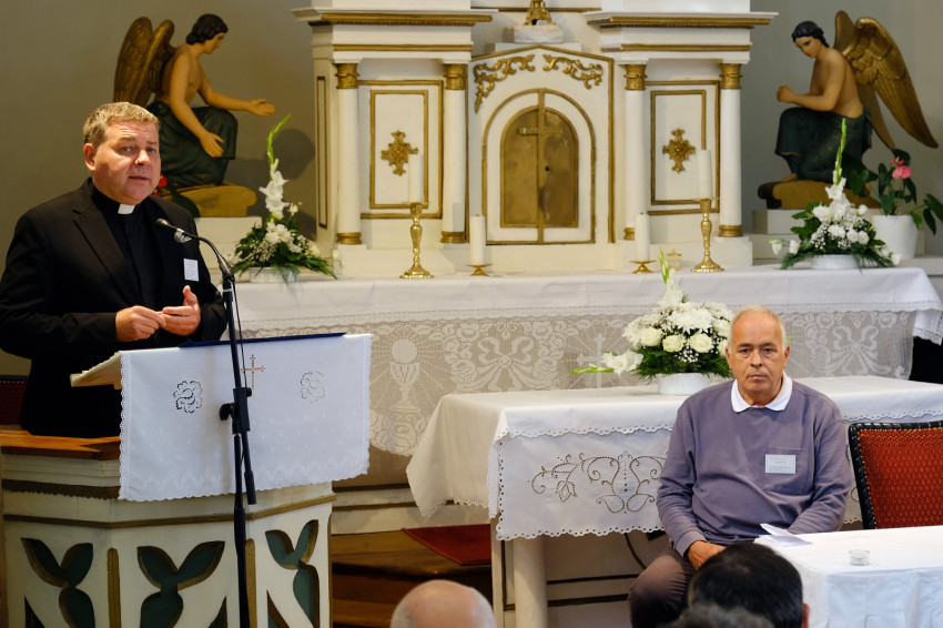 Az egybegyűlteket a Szent Kereszt-templomban Tóth Tamás, a Magyar Katolikus Püspöki Konferencia (MKPK) titkára köszöntötte, tolmácsolva a püspökök testületének köszönetét. Kiemelte: a ház alapítói felismerték, hogy „a szenvedélybetegségek minden közösségben jelen vannak. Egy egészséges közösség pedig kell hogy tudjon segíteni bajba jutott tagjain. Ezért hoztak létre húsz évvel ezelőtt egy napjaink kihívásaira reagáló, modern gondolkodású intézményt.” Tóth Tamás megemlékezett az alapítókról: Rauch László és Ackermann Kálmán atyáról, világi munkatársaikról, kiemelve az alapítás óta az intézményt vezető Hidász Zoltánt. Hangsúlyozta, a Hivatásőrző Ház sokkal több, mint intézmény, nem kórház, nem menhely, hanem otthon. „Aki belép e falak közé, az érezheti Isten támogató, befogadó és megbocsátó jelenlétét.” Itt azt próbálják megtanítani mindenkinek, hogy újra képesek legyenek szeretni, és mélyebb kapcsolatot alakítsanak ki a világgal, egymással, önmagukkal és Istennel, ahol a közösség megtartó erejével támaszt és jövőképet találnak a szenvedélybetegek. Hozzátette: az MKPK „erejéhez mérten igyekszik minden segítséget megadni ahhoz, hogy a Hivatásőrző Ház a továbbiakban is végezhesse hiánypótló misszióját”.