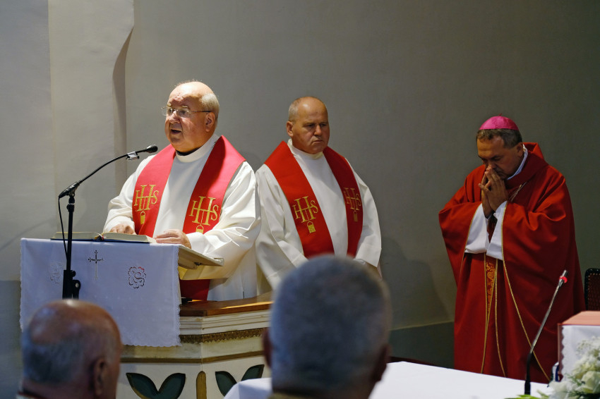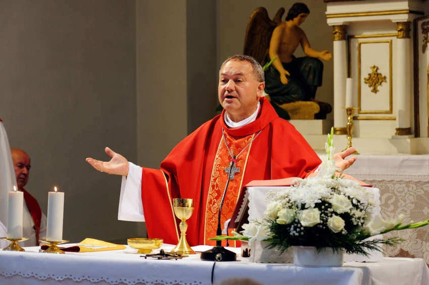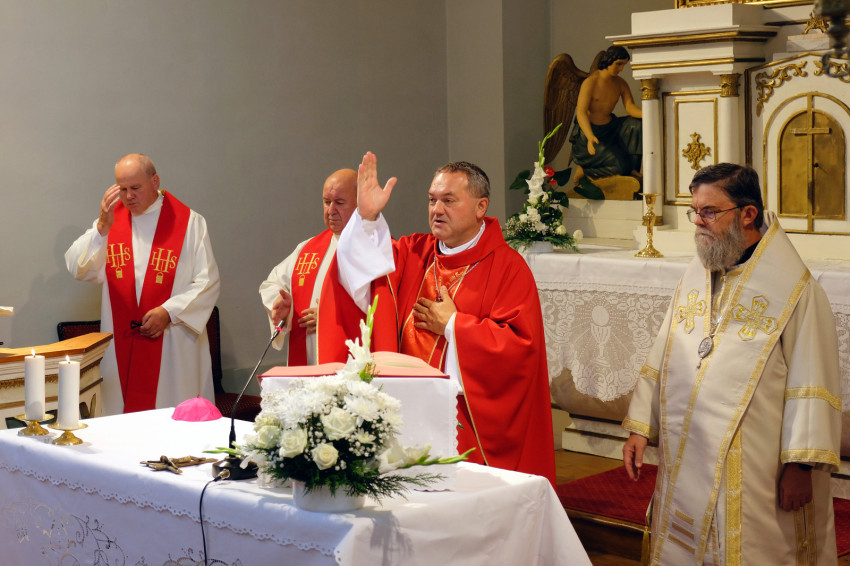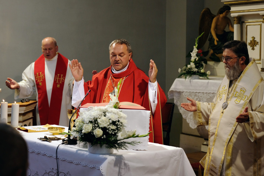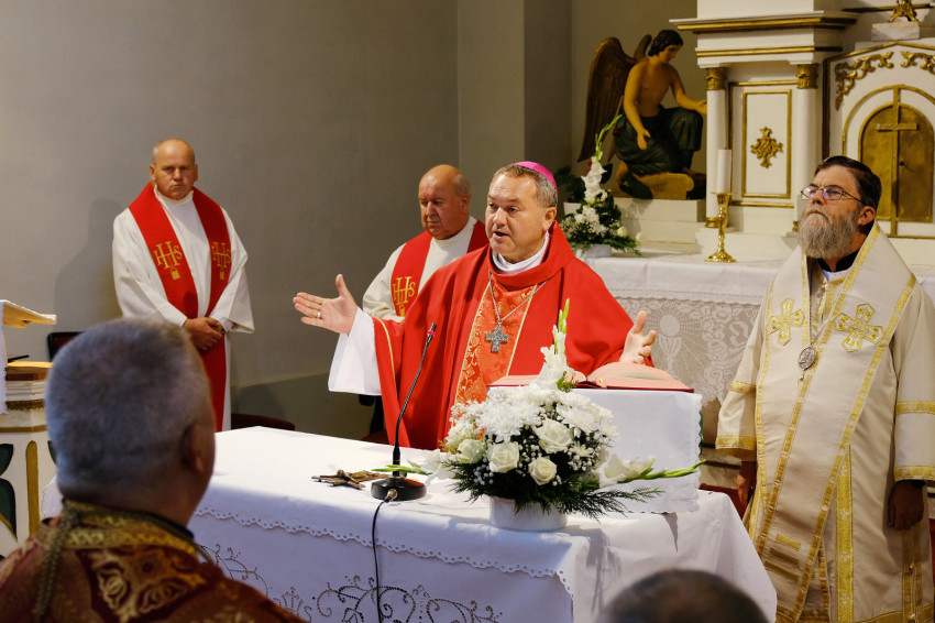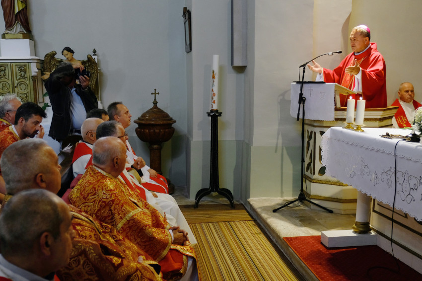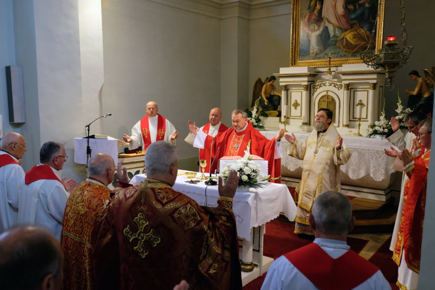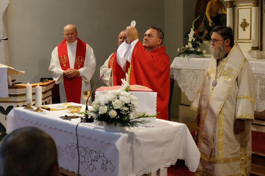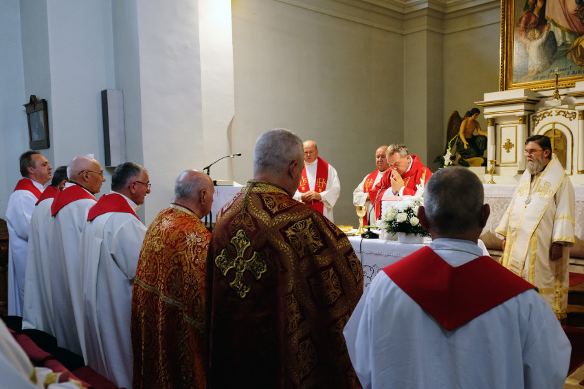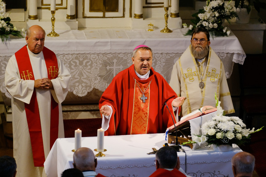 A jubileumi szentmise főcelebránsa és szónoka Felföldi László pécsi megyéspüspök volt. Koncelebrált Orosz Atanáz miskolci megyéspüspök és számos római és görögkatolikus paptestvér.