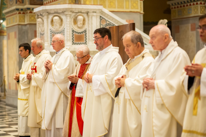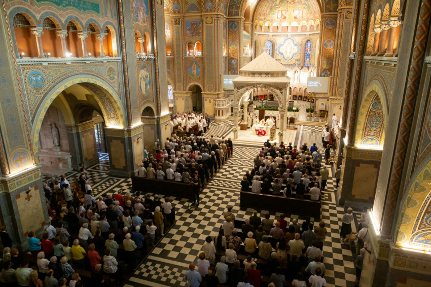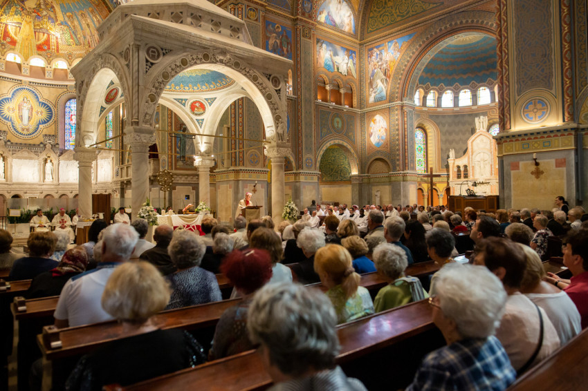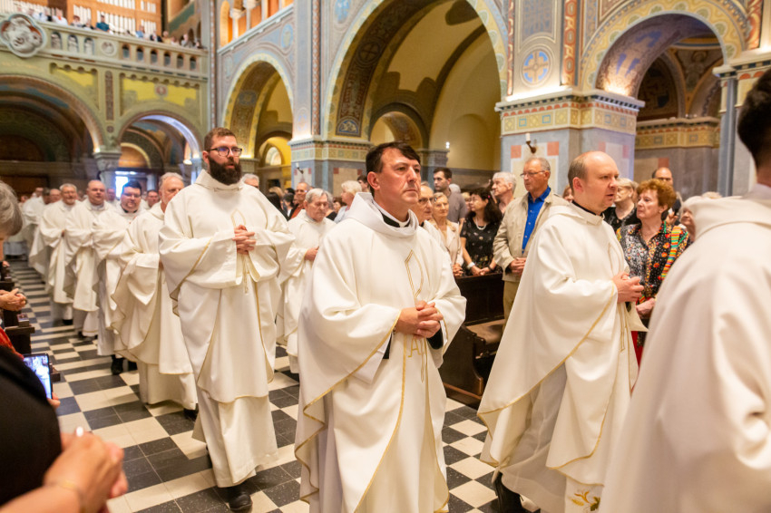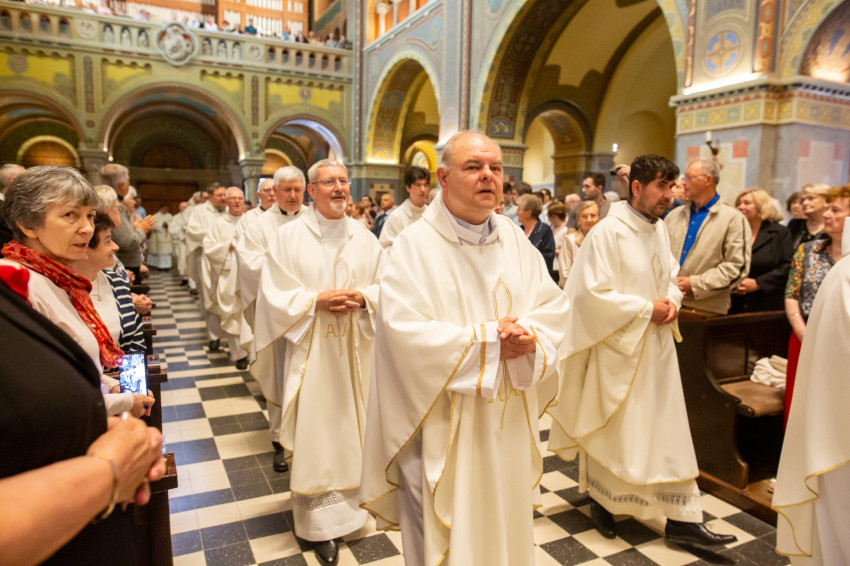 70 év papi szolgálat a Szeged-Csanádi Egyházmegyében kötődések sokaságát alakította ki – mutatja ezt a zsúfolásig megtelt templomtér is Gyulay Endre rubinmiséjén. Nagy számban vannak itt paptestvérek Kiss-Rigó László főpásztor vezetésével, hogy nyugalmazott megyéspüspökükkel ünnepeljenek. Eljött hálát adni a társszentelt püspök, Martin Roos Temesvárról, a szomszéd egyházmegyét kormányzó Bábel Balázs érsek, a Váci Egyházmegyéből Varga Lajos segédpüspök, paptestvérek az ország különböző részeiből és a Szent Gellért Szeminárium növendékei.