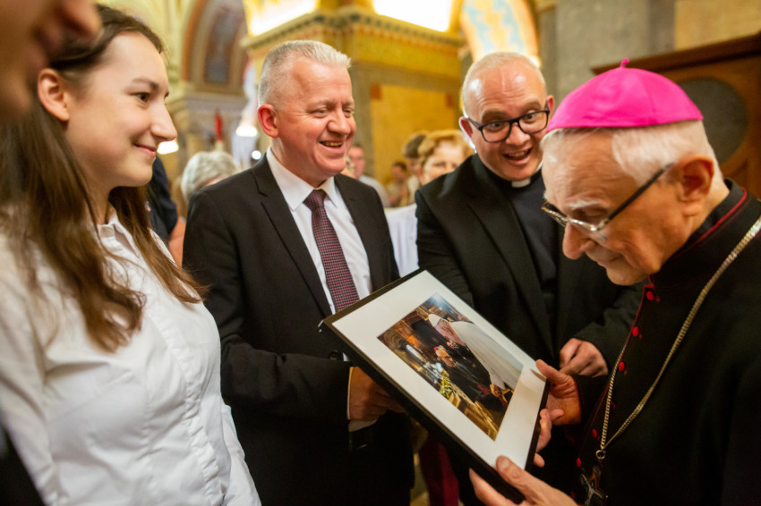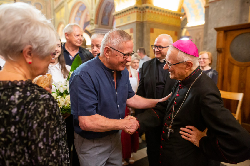 Kiss-Rigó László megyéspüspök köszöntötte jubiláló elődjét és tolmácsolta Ferenc pápa áldását: „Veled együtt és érted adunk most hálát. Azért a szolgálatért, amit az egyházmegye javáért és Isten dicsőségére végeztél.”