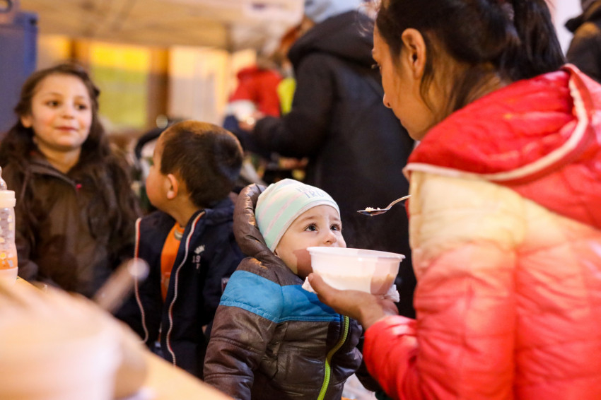Az adományozók ide is folyamatosan érkeznek. Egy háromgyermekes anyuka, Annamária már többször járt itt, és játékokat hozott a gyermekeknek. Most a legkisebb fiával érkezett. Ha valakinek menekülnie kell, az emberek érthető módon először nem a játékokat pakolják be. Amikor adományokat hozott a férjével, látta, hogy a kismamák ülnek, mellettük a gyermekeik, nem tudnak mit kezdeni magukkal. Ezért határozta el, hogy játékokat hoz nekik, így tegnap kisautókat – és öröm volt látni, hogy azonnal felpattantak, és játszani kezdtek. Ma már rengeteg játék van a kicsik kezében, autó, matchbox, repülő.