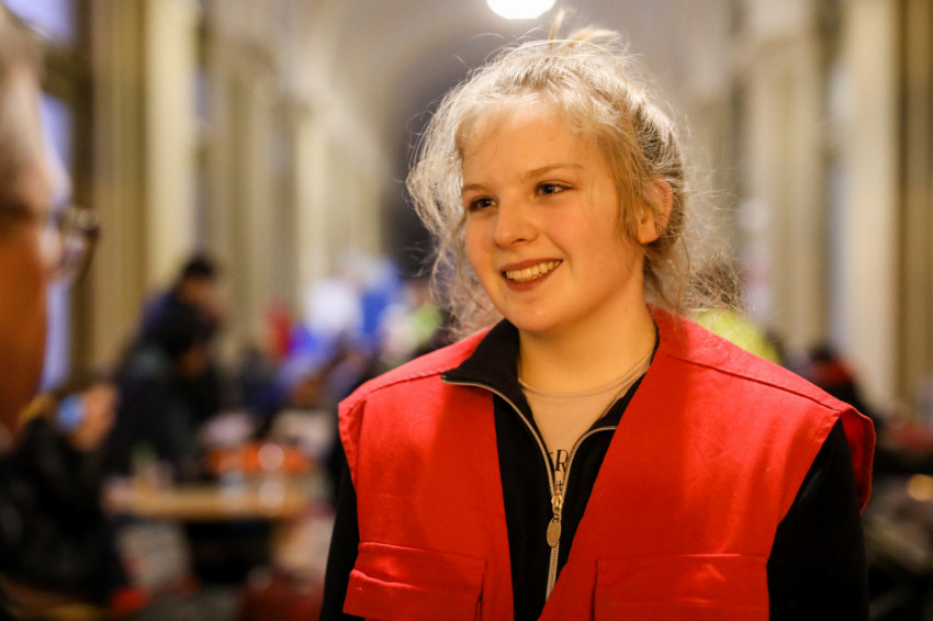 Ugyancsak a pult mögött segédkezik a tizennégy éves Fejérdy Piroska, a Szent Angéla Ferences Általános Iskola és Gimnázium diákja, aki az édesanyjával van itt. Hangsúlyozza: ezeknek az embereknek borzasztó nehéz a helyzetük, elűzték őket az otthonukból, a hazájukból.