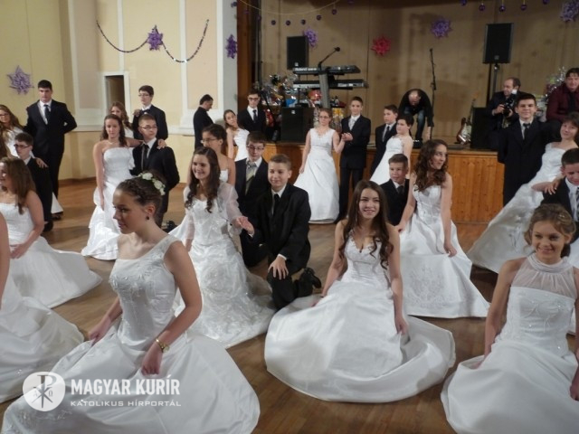 Harangozó Vilmos esperes-plébános bált megnyitó szavai után következett a várva várt angolkeringő. A táncra hónapokon át gyakoroltak a nyolcadikos diákok Debreczeni Attila irányításával.