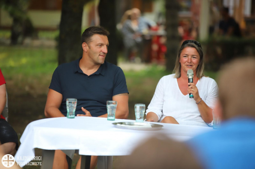 A strand focipályája ezt követően nézőtérré alakult át: itt hallgathatták végig a sportolóházaspár „sikersztoriját” a fiatalok. Talán nem túlzás Kiss Gergelyék történetét így nevezni, hiszen nemcsak a karrier, de a magánélet terén is követendő példa az övék.