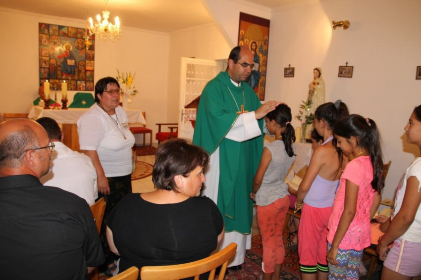 A tábornyitó szentmisét Székely János püspök, a Magyar Katolikus Püspöki Konferencia cigánypasztorációért felelős püspöke mutatta be. Prédikációjában Boldog Ceferinóról (1861–1936), a romák patrónusáról beszélt; hangsúlyozta továbbá, milyen fontos, hogy a gyerekek ne csak egymással, hanem Jézussal is találkozzanak a táborban. A liturgia végén egyesével megáldott minden táborlakót.
