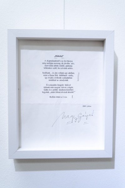 Az ünnepségen közreműködött a Prohászka-iskola kórusa, előadásukban a költő Karácsonyéji ár(v)ulás című versének megzenésített feldolgozása hangzott el, gitáron közreműködött Braunsteiner Péterné és Móriné Kiss Ágota. A kiállítás kurátora Pintérné Gergics Ágnes.