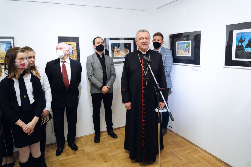 Az esemény délután a Triangulum Galériában folytatódott, ahol Veres András megyéspüspök ünnepélyes keretek között megnyitotta a pályaművekből válogatott, Valaki kölcsönbe vette kezedet című tárlatot, majd köszöntője után átadta a legkiválóbb pályázóknak a díjakat.