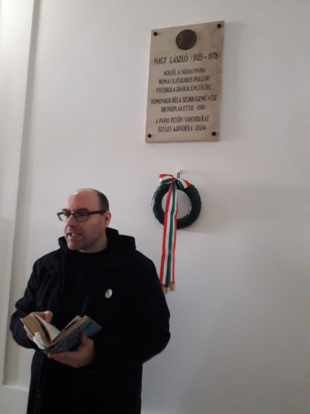 „Ezzel a táblával kívánunk büszkén emlékezni és emlékeztetni mindenkit e falak között a valamikori Római Katolikus Polgári Fiúiskolára és Nagy László költőre. Pápán a római katolikus oktatás méltó folytatója és a hajdani római katolikus iskolák emlékének méltó őrzője a mi iskolánk. Ezért joggal lehet Nagy Lászlónak, a hajdani római katolikus polgári híressé vált tanulójának, hazánk jeles irodalmi, művészeti személyiségnek ebben az intézményben is egy emlékjele.” – hangsúlyozta az intézményvezető.