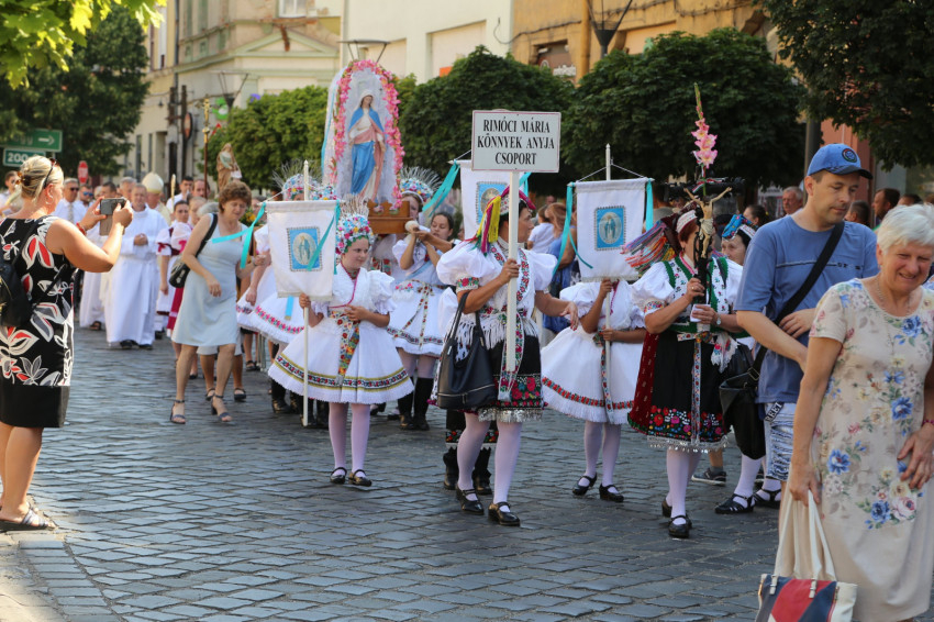10 órakor megindult a búcsúi menet. A falvak viseletbe öltözött népe a papság képviselőivel – Palánki Ferenc debrecen-nyíregyházi megyéspüspökkel, az ünnepi mise főcelebránsával és szónokával, valamint Turai János kanonokkal, a Szentháromság-templom plébánosával – a Palóc ligetbe vonult. Útközben a Rimóci Rezesbanda kísérte éneküket.