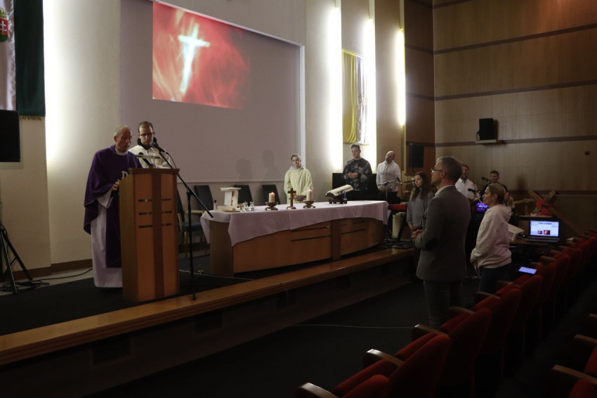A főiskola dísztermében tartott lelkinapon Csiszér László és zenekara magas művészi értéket képviselő zenéjével és hiteles tanúságtételekkel irányította rá a figyelmet arra, hogy Isten mindannyiunkat szerető Atya, és hogy Jézus arra hív: elfogadó szeretettel forduljunk önmagunkhoz, azzal a szemmel nézzük saját magunkat, amellyel az Atya lát minket.