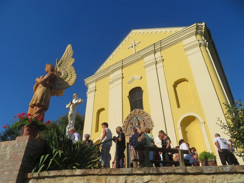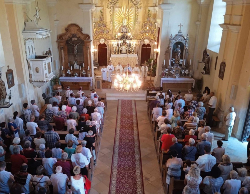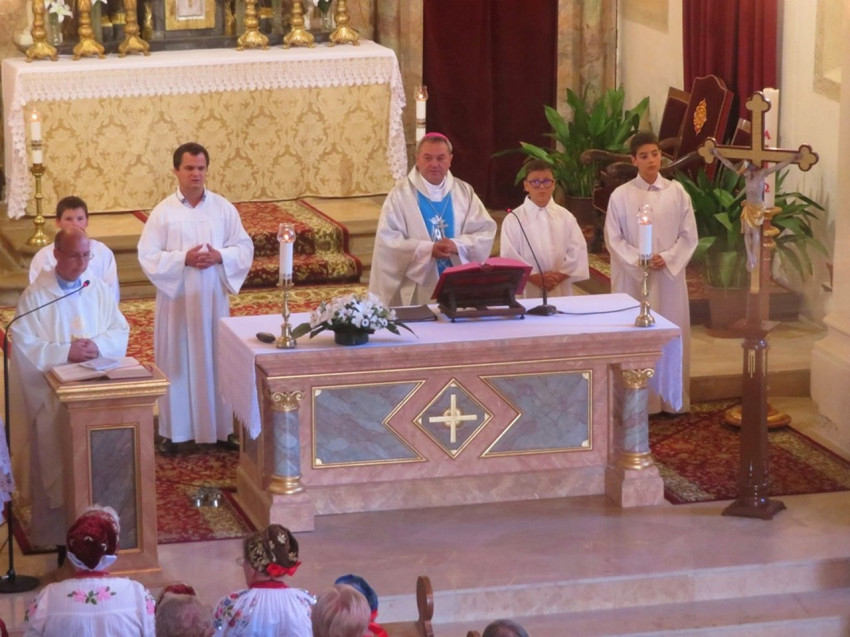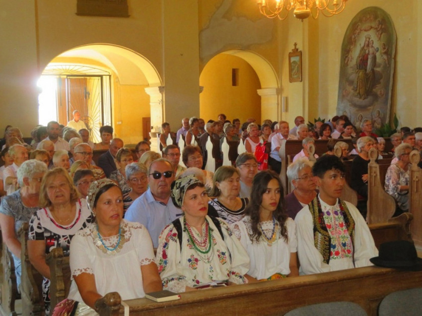 Bukovics István helyi plébános köszöntötte Felföldi László pécsi megyéspüspököt, Fábiánné Mester Rita polgármestert, a kórus tagjait, a zarándokokat, híveket, köztük a népviseletbe öltözötteket.